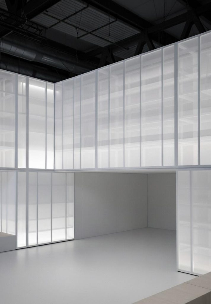 From kitchen to patio, from gallery to studio, the space assumes the rhythm of the fair without losing clarity or coherence. In this sense, the constructive image is based on a translucent architecture, understood not as absolute transparency, but as a filter that humanizes light and allows one to intuit what is happening inside without fully revealing it.